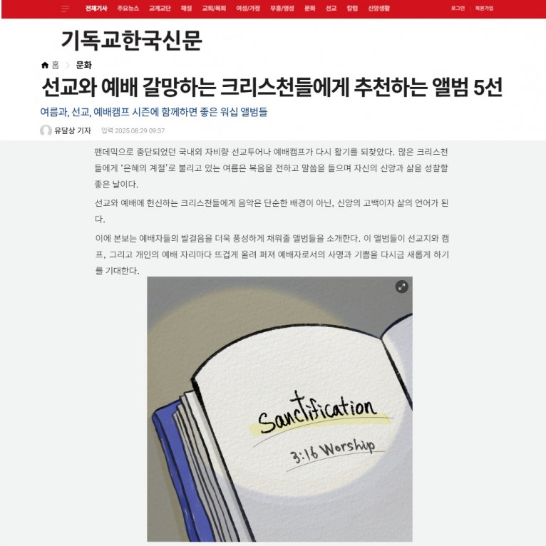 이에 본보는 예배자들의 발걸음을 더욱 풍성하게 채워줄 앨범들을 소개한다. 이 앨범들이 선교지와 캠프, 그리고 개인의 예배 자리마다 뜨겁게 울려 퍼져 예배자로서의 사명과 기쁨을 다시금 새롭게 하기를 기대한다.