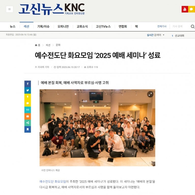 [기사] 예수전도단 화요모임 ‘2025 예배 세미나’ 성료(고신뉴스 KNC)