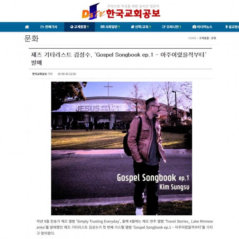 [기사] 재즈 기타리스트 김성수, ‘Gospel Songbook ep.1 – 아주어렸을적부터’ 발매(한국교회공보)