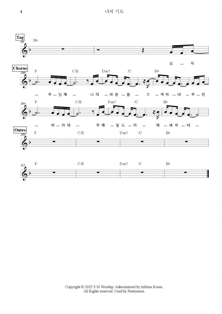 오직 주님께 나의 마음을 고백하네